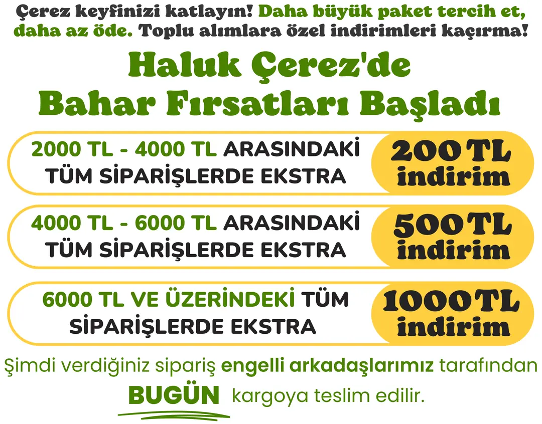 Sipariş ettiğim ürünlerin hepsi birbirinden taze ve de lezzetli. Değişmez kuruyemiş adresim Haluk Çerez oldu. Kesinlikle denemelisiniz. İlker B.